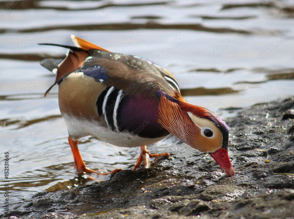Mandarin Duck Eating At Side Of Pond Stock Photo Adobe Stock